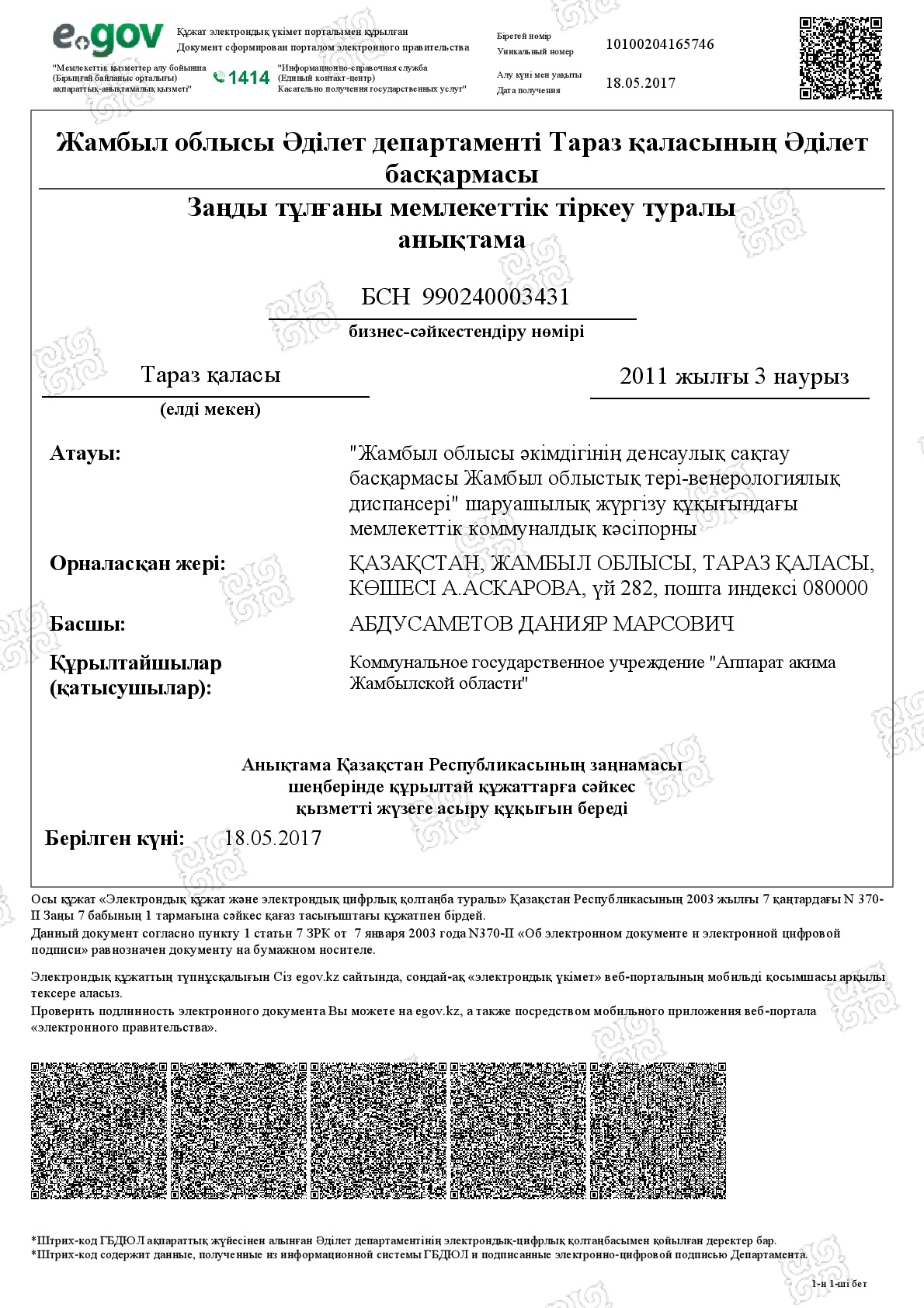 "Жамбыл облыстық тері-венерологиялық диспансері"