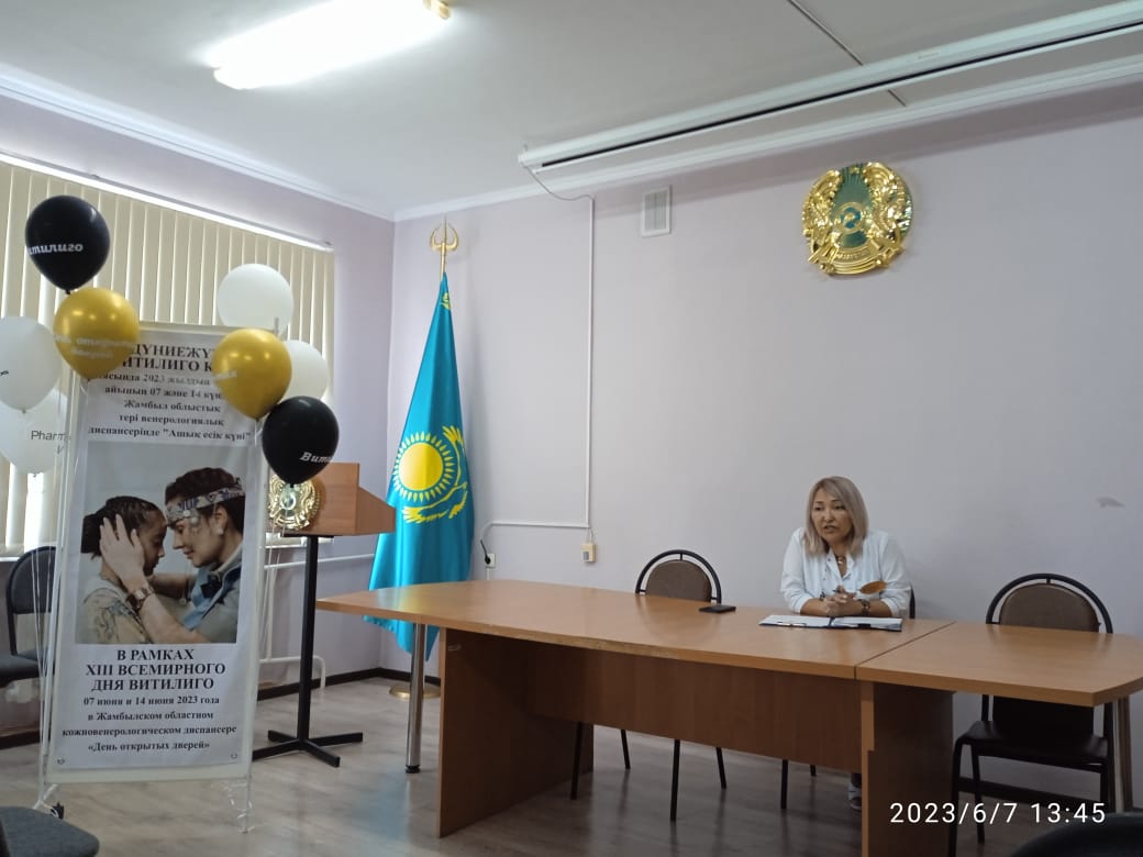 Cәлеметсіз бе. Құрметті Тараз қаласының тұрғындары 07.06.2023 жылы Жамбыл облыстық тері венерологиялық диспансерінде «Витилиго» диагнозы қойылған пациенттерді тегін қабылдау және кеңес беру үшін Ашық есік күні өткізілді.