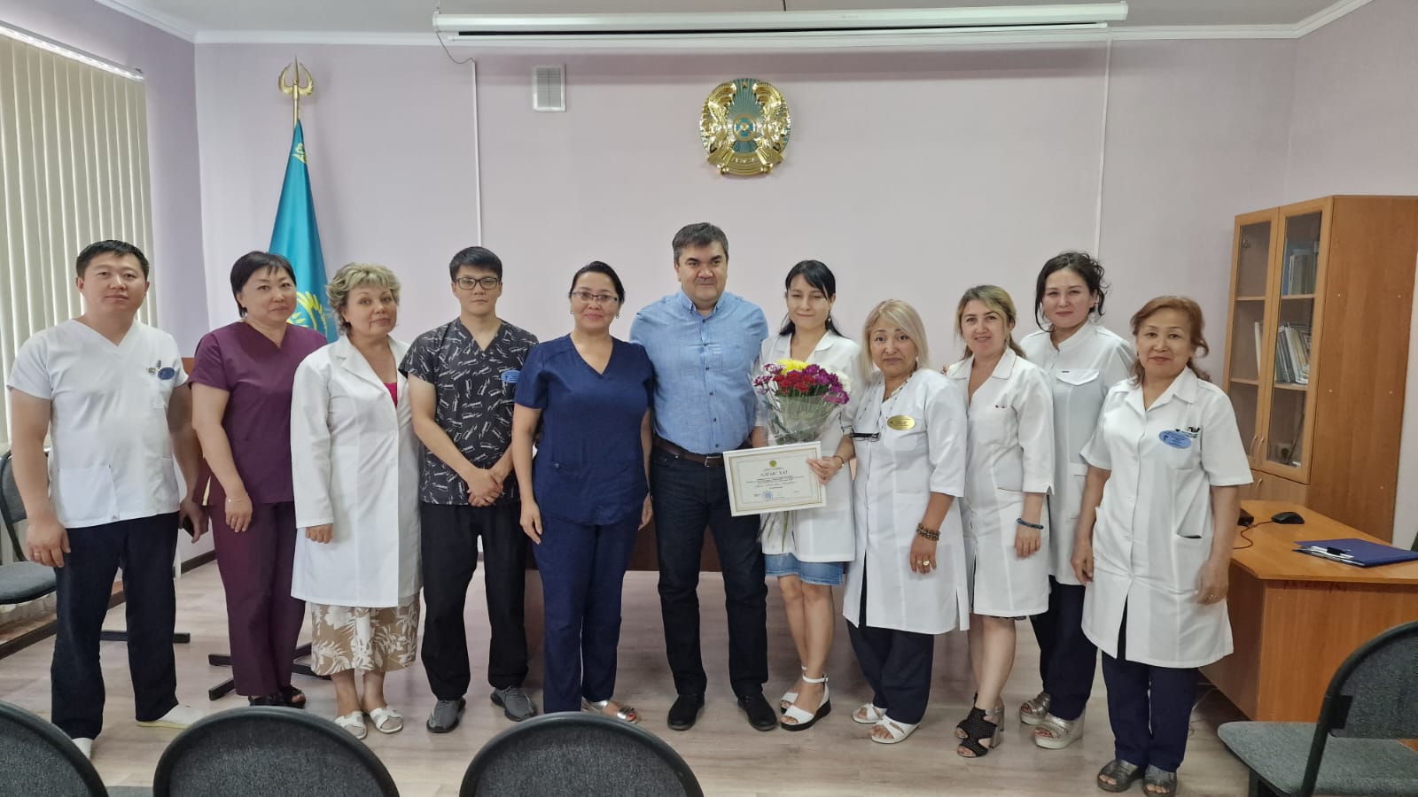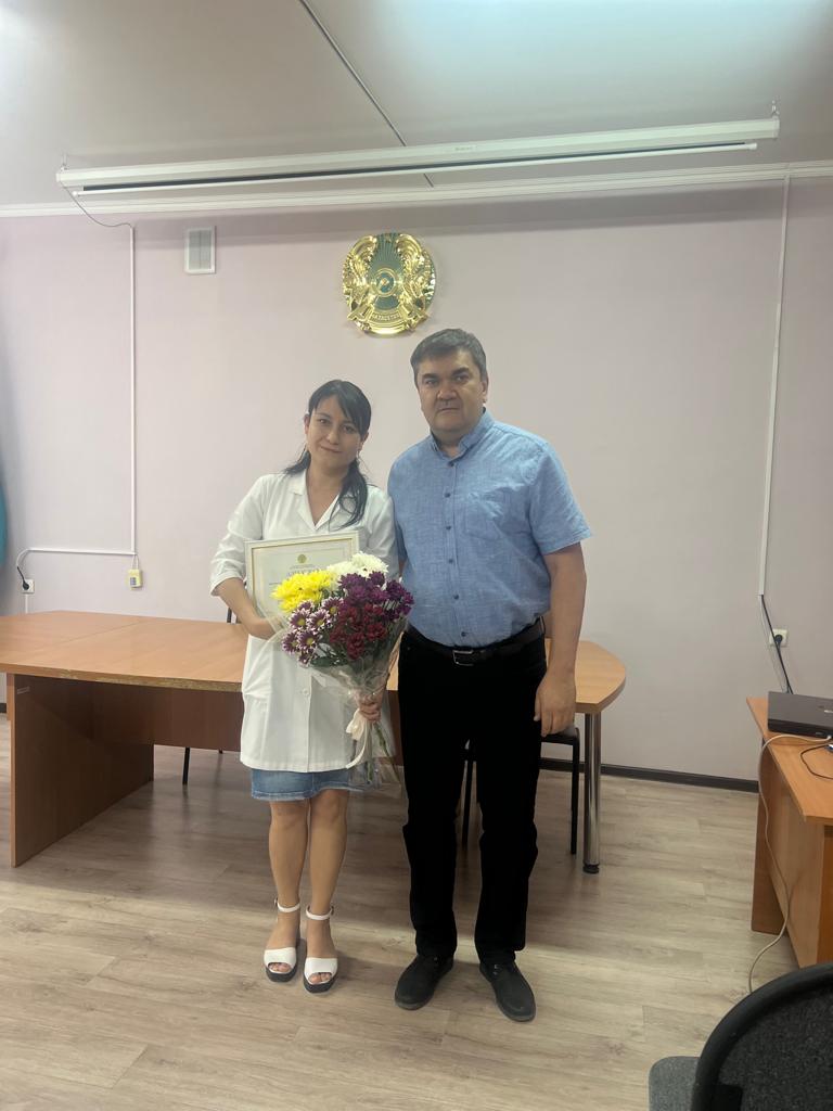 В Жамбылском областном кожновенерологическом диспансере была проведена планерка, на котором поздравили заведующую дневного стационаре Малаеву Лейлу Ахраловну, ей была объявлена благодарность от министра здравоохранения А.Ғиният за многолетний труд в системе здравоохранения, в честь прошедшего профессионального праздника День медицинского работника
